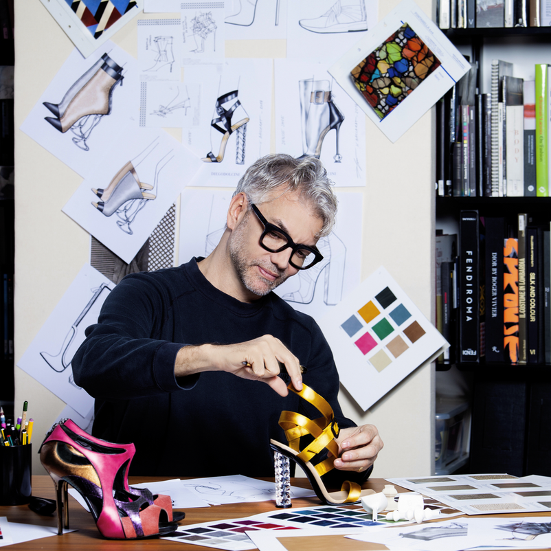 His passion for shoe design began very early, with important collaborations, and in 1994 he founded the Diego Dolcini brand, immediately distributed in the best boutiques around the world.
